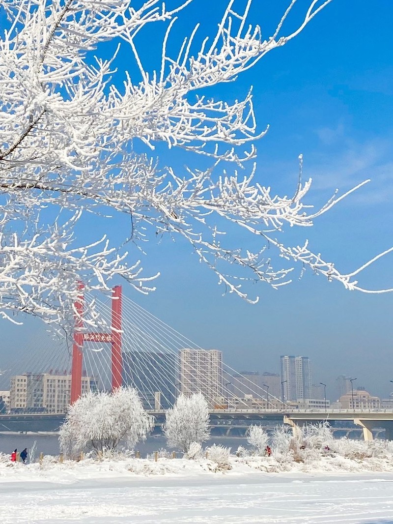 每年的12月至次年2月,雾凇岛上的雾凇景观最为壮观,当雾凇降临,树枝、草丛、岩石都披上了一层银装,仿佛置身于童话世界。🎇🎇🎇